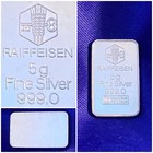 Reiner Silberbarren Raiffeisen Bank SWISS 5g 999 Original Vintage Silver + Tasche